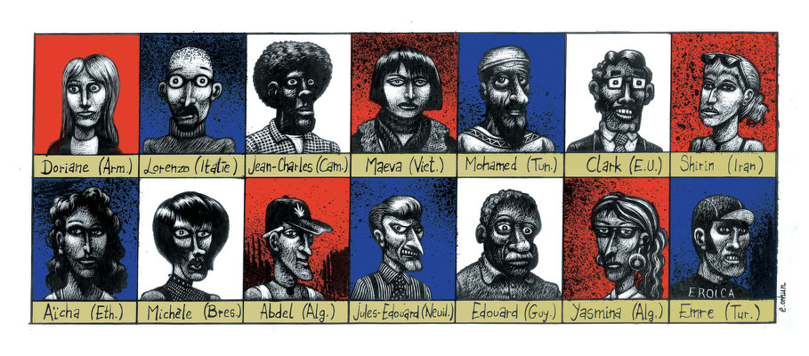 Les dessins ci-dessous ont été réalisés pour divers journaux et magazines : Le Monde, Libération, Le Magazine Littéraire, la revue XXI pour ne citer que les principaux.